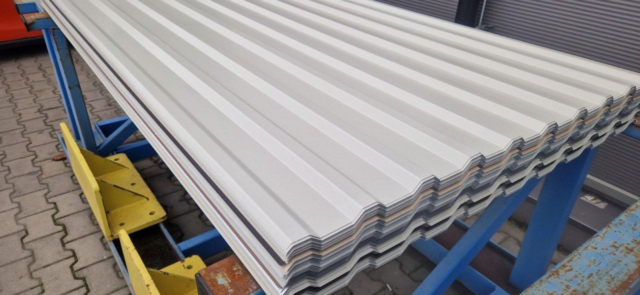 Blacha trapezowa T-18 mix odcieni bieli.