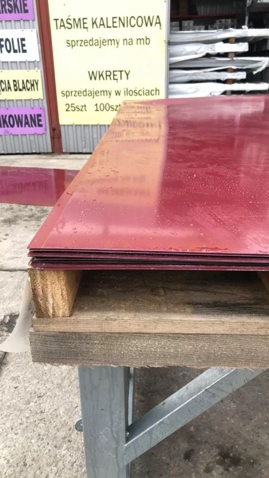 90 zł za arkusz - blacha foliowana, bez większych widocznych wad na powłoce