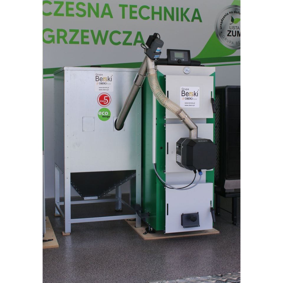 - Zbiornik pelletu w zestawie: do kotła dołączony jest 200-litrowy zbiornik na pellet zupełnie gratis – więcej komfortu i oszczędności od pierwszego dnia użytkowania.