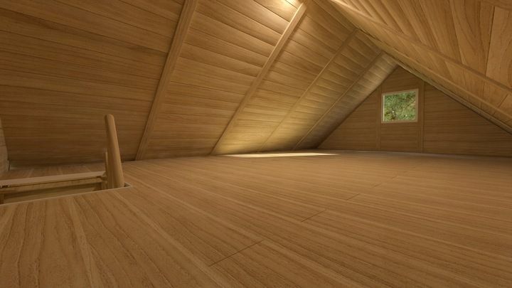 Schody rozkładane do wyjścia na piętro w zestawie domku.