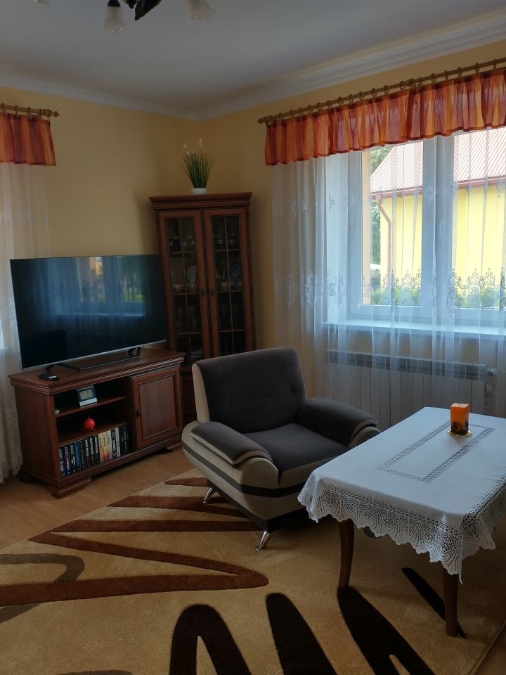 Powierzchnia użytkowa domu 100m2 na co składa się: przedpokój, kuchnia, 3 pokoje oraz łazienka i ganek. Poddasze domu (strych) niezagospodarowane. Dom ocieplony styropianem 10cm,elewacja tynk akrylowy,okna PCV, pod domem 2 duże piwnice.