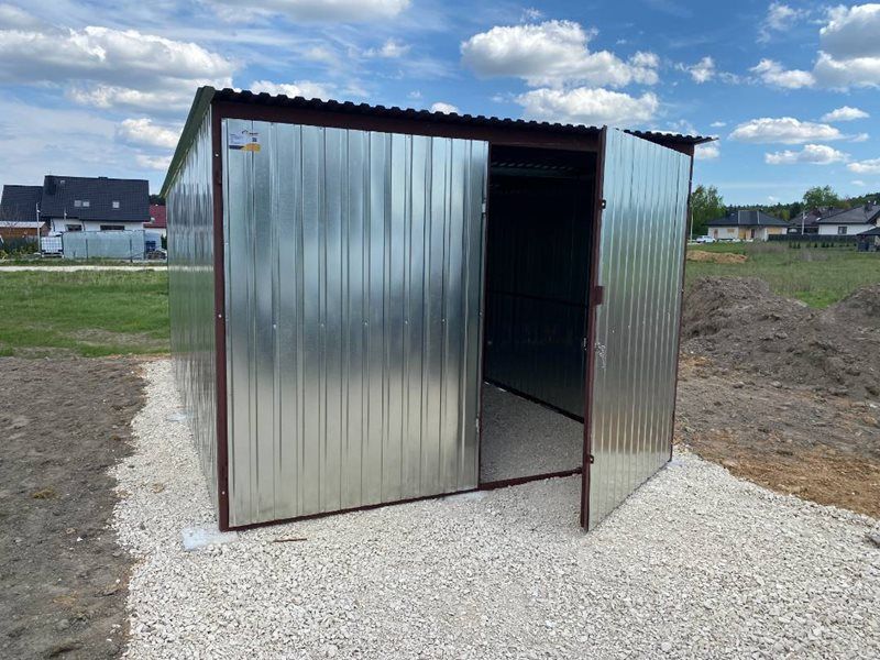 Poniżej przedstawaiamy ofertę na garaż o wymiarach standartowych 3m x 5m z blachy ocynkowanej oraz konstrukcji wzmocnionej profilem zamkniętym pod dach.