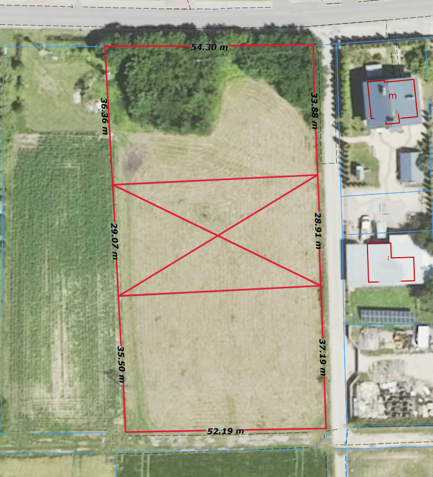 - działka 19,11 ar ma 37 m szerokości x 53 m długości, nie ogrodzona, położona jest w trzecim pasie zabudowy przy drodze utwardzonej.