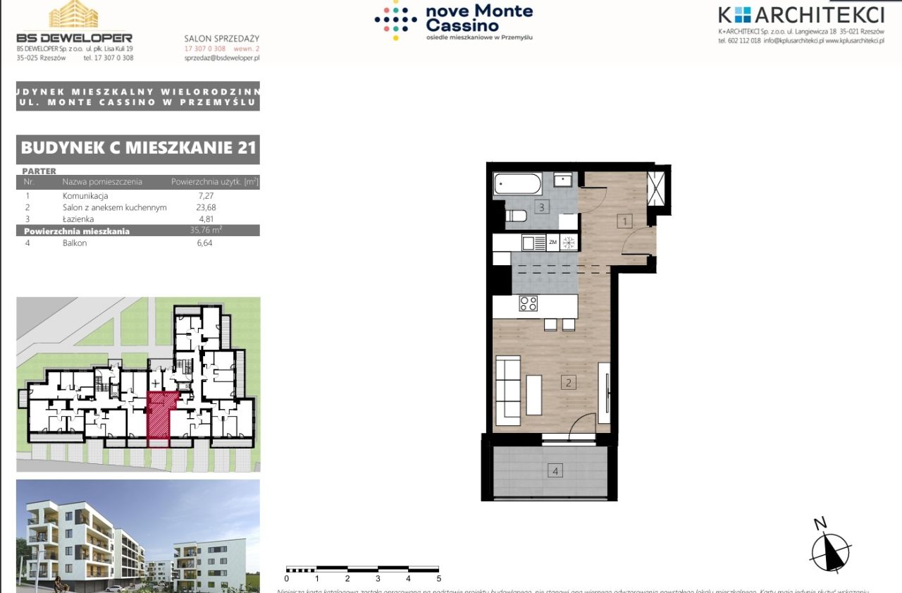 Na sprzedaż funkcjonalne mieszkanie o powierzchni 35,76 m, zlokalizowane na parterze w nowej inwestycji Nove Monte Cassino.