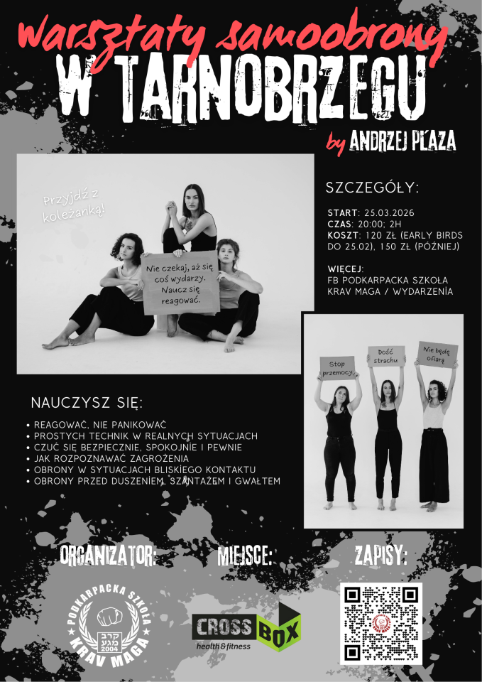 Cross Box Tarnobrzeg oraz Podkarpacka Szkoła Krav Maga zapraszają na praktyczne warsztaty samoobrony dla kobiet. Pierwsze spotkanie odbędzie się 25 marca 2026 r. o godz. 20:00.