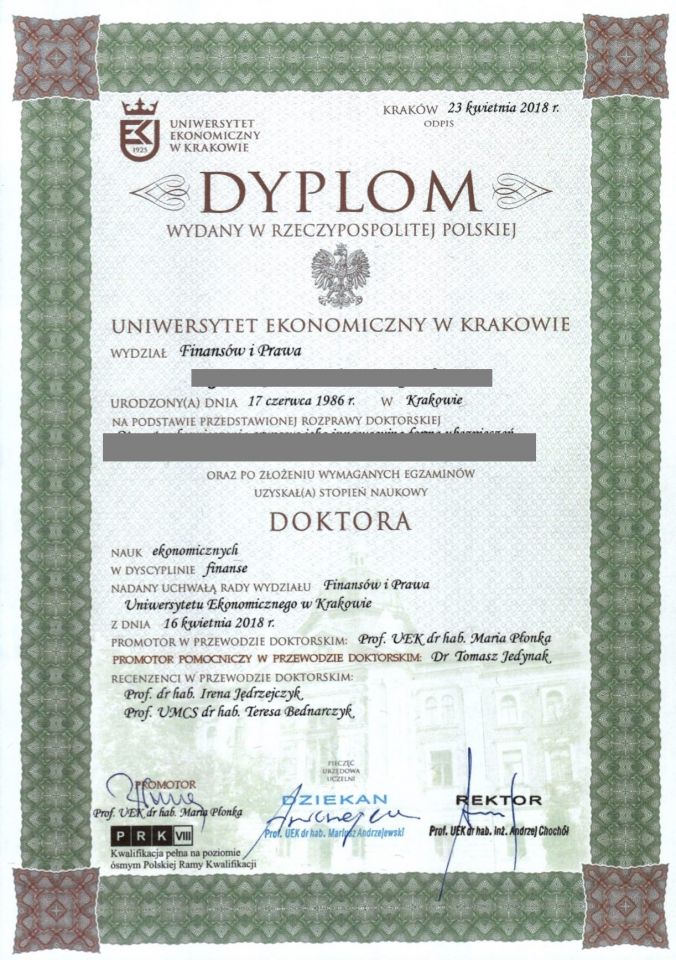 Dyplomy ukończenia Studiów Wyższych, wszystkie uczelnie.
