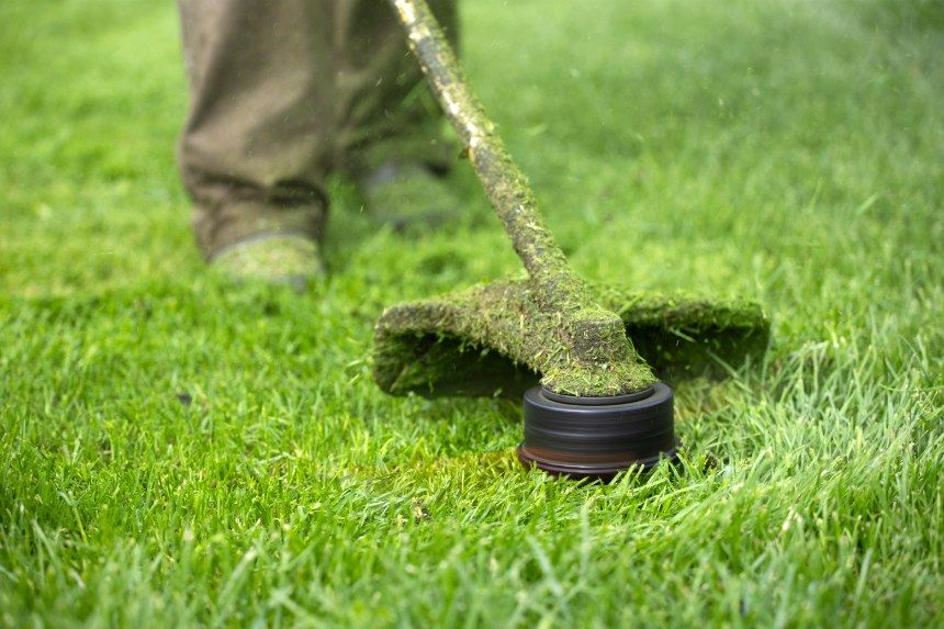 Koszenie trawy podkaszarką, kosiarką